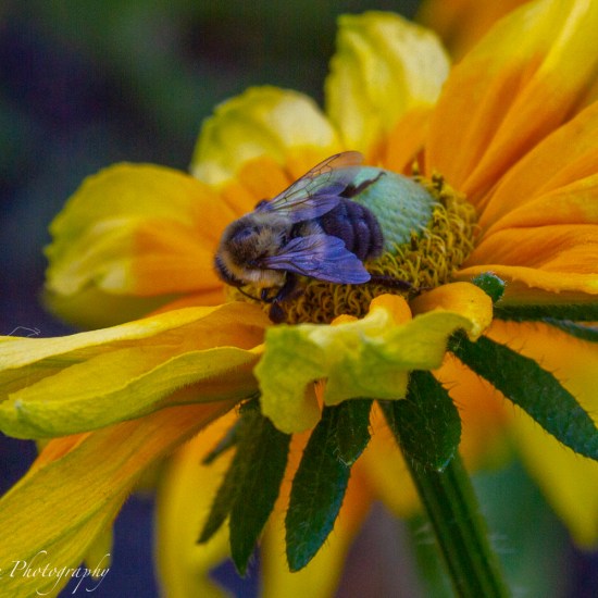 A little bee joined the butterfly.