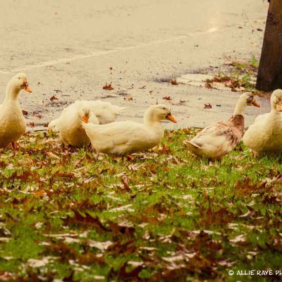 The funny little creatures were playing in the pouring rain. I got out to say hi and photograph them, and a goose extended her head and came charging after me. I was running from a 10 pound bird!
