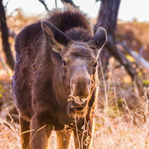 When I turned around, it was the little moose coming out of the woods. It was then I began to talk to her in a soft voice. I know it may sound odd to some folks, but why not? I mean, it was just the 2 of us and she’d been alone, so I wasn’t afraid the parents would show up or anyone else.