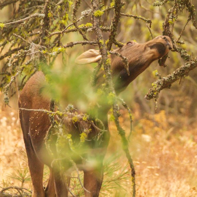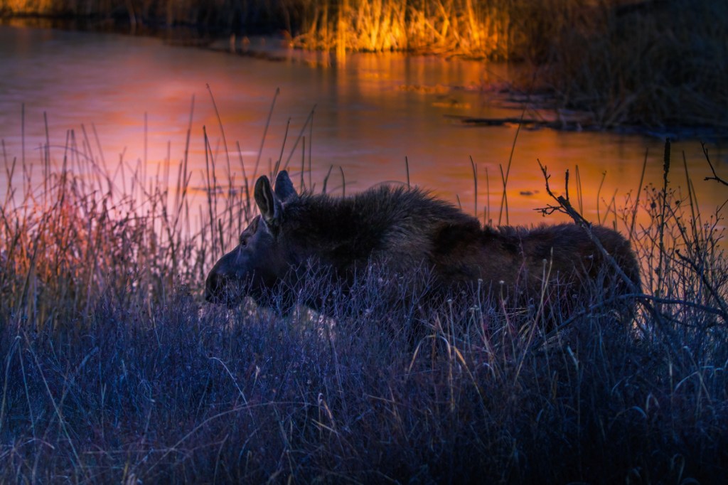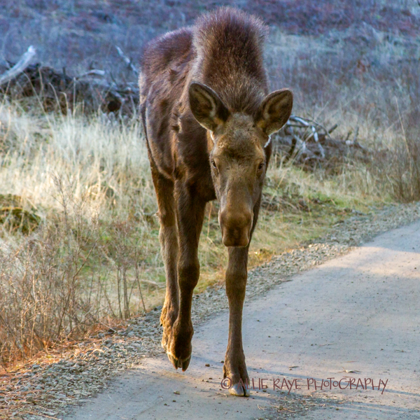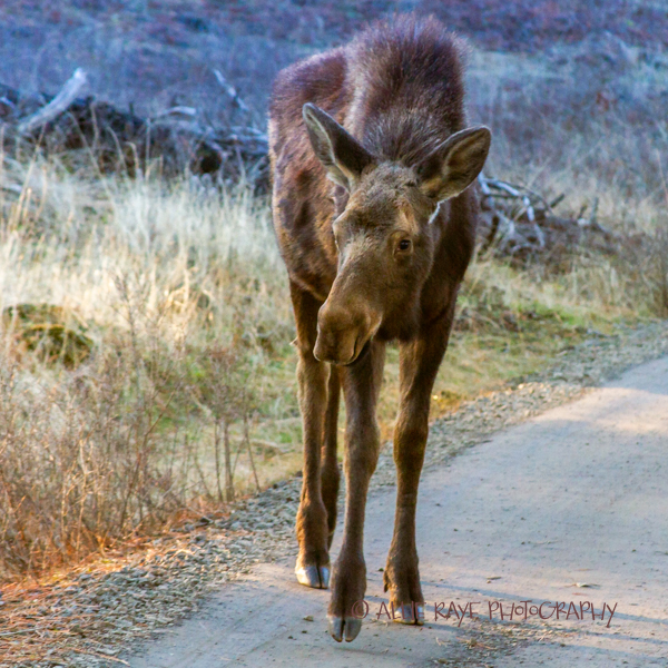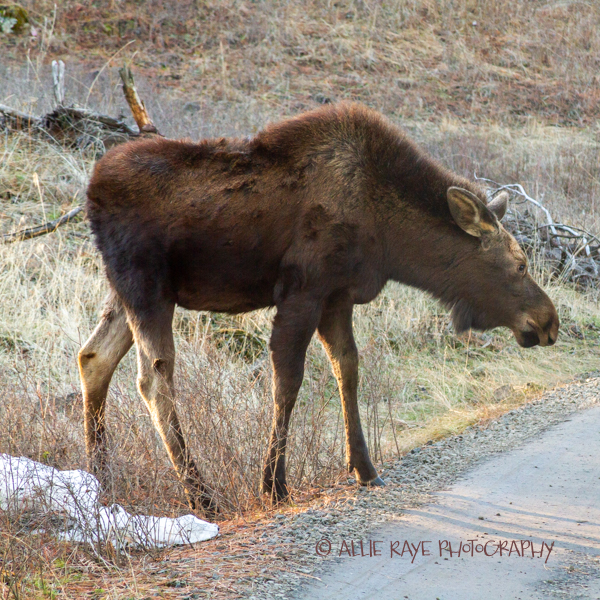 The moose was a young female and was enjoying eating from the bushes and flowers. I am big on respecting wildlife and always make sure I stay far enough back, so I don’t disturb them. Sometimes, it’s not possible since they are so close, and I stick by my car in that situation.