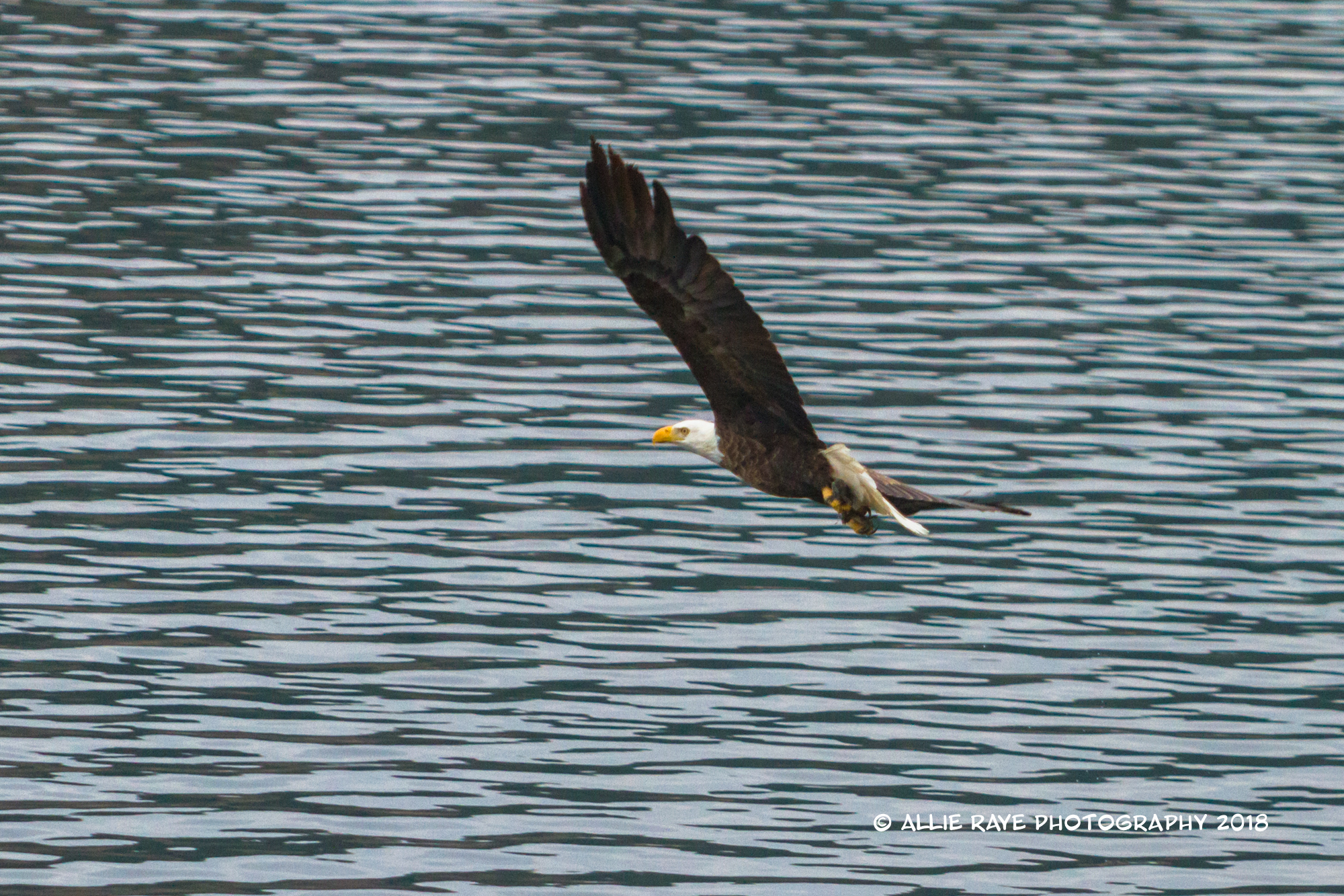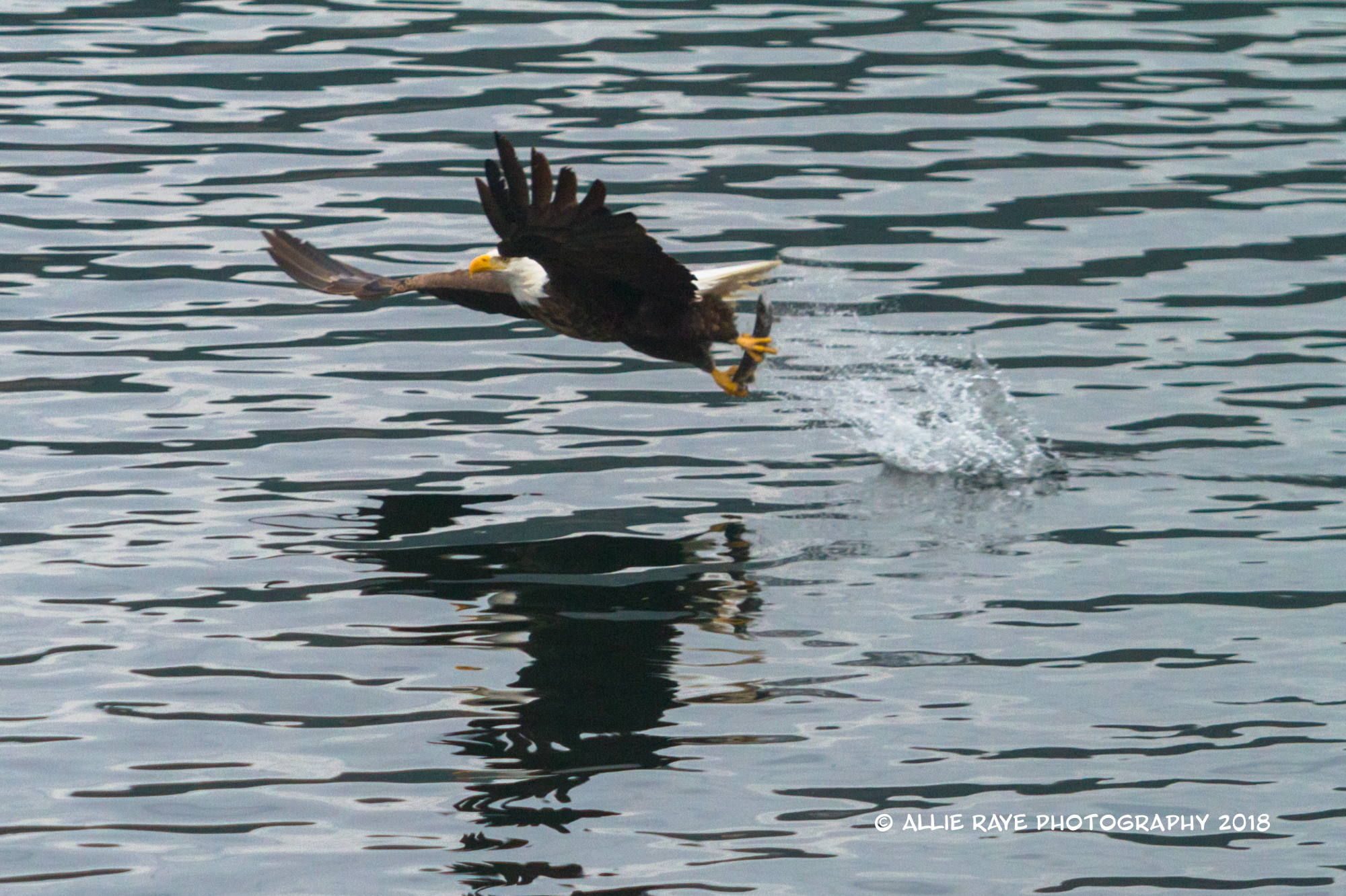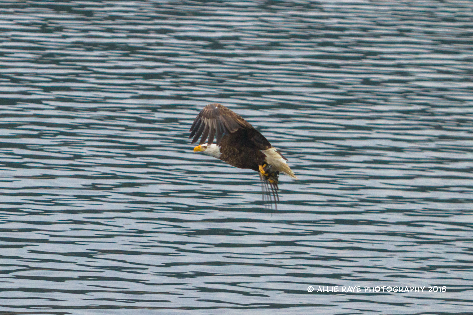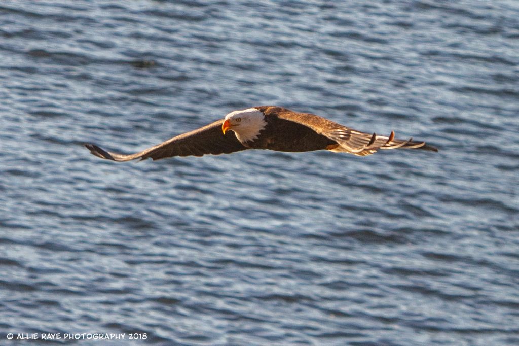 I tried the entire time to capture an eagle swooping down and actually grabbing a fish. I was able to get that shot a few times, however, I was usually not ready. But, this is a series of an eagle get his sushi to-go.